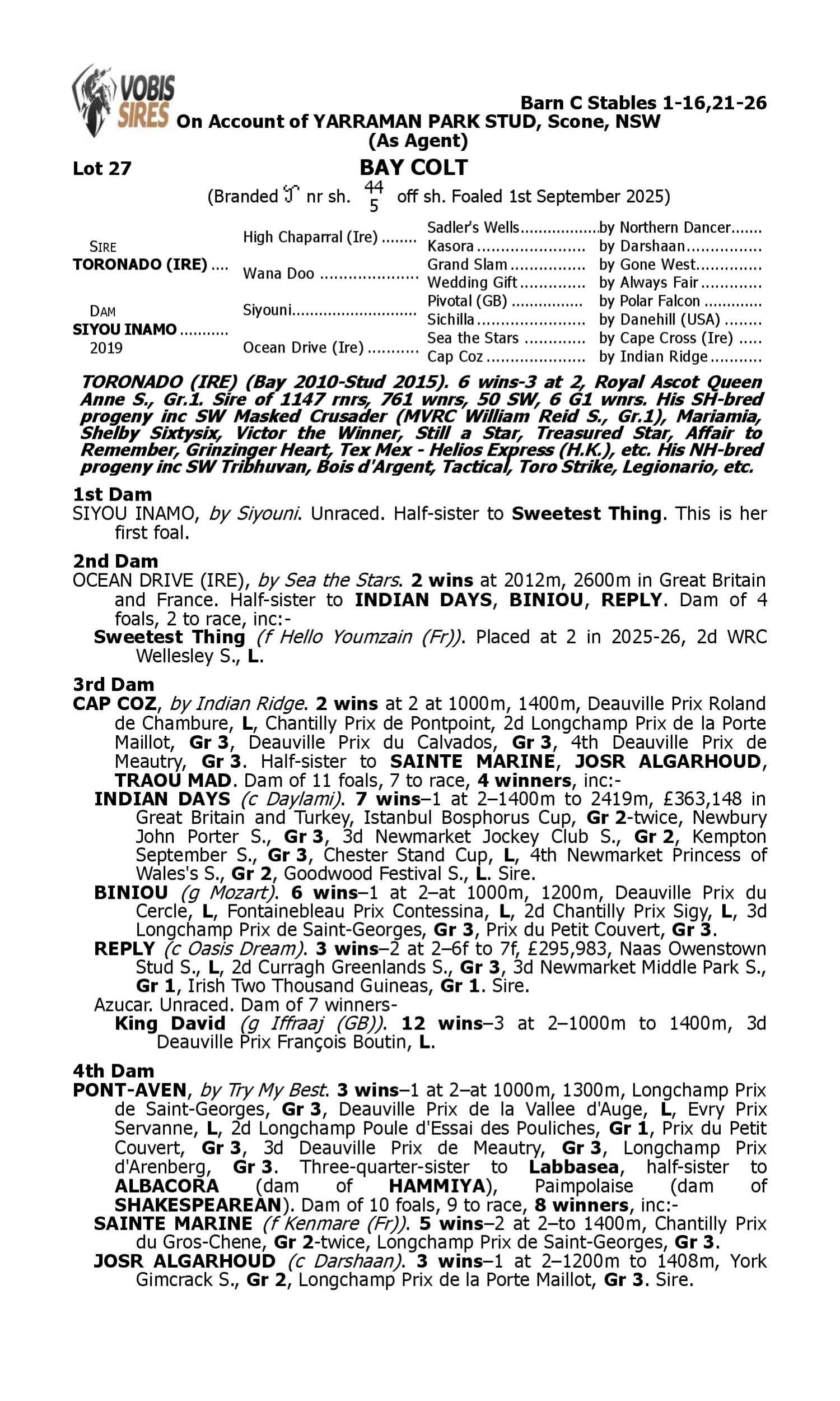 Lot 26 has pedigree updates since the release of the catalogue.
