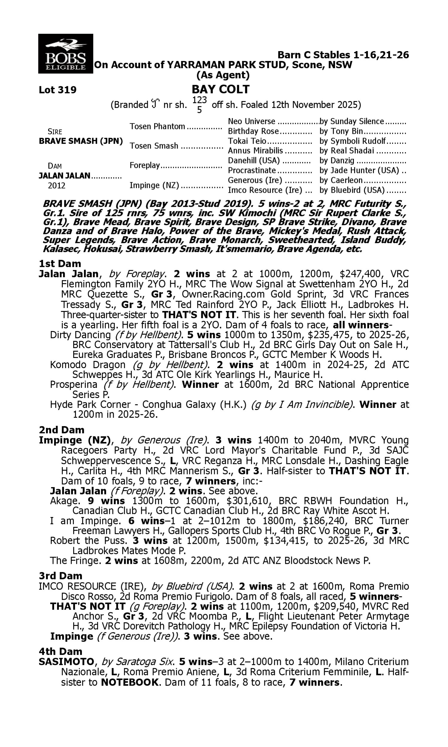 Lot 318 has pedigree updates since the release of the catalogue.