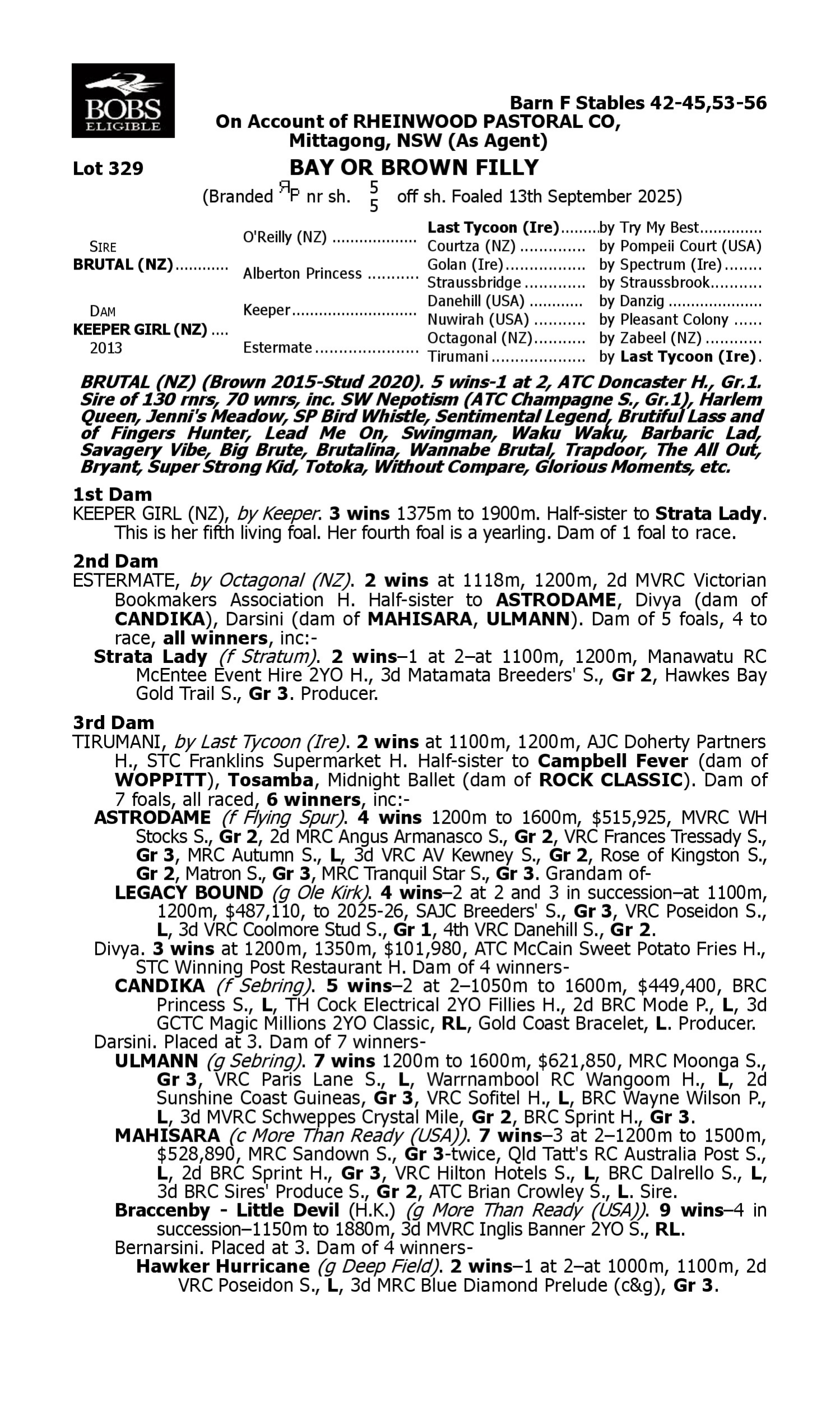 Lot 328 has pedigree updates since the release of the catalogue.