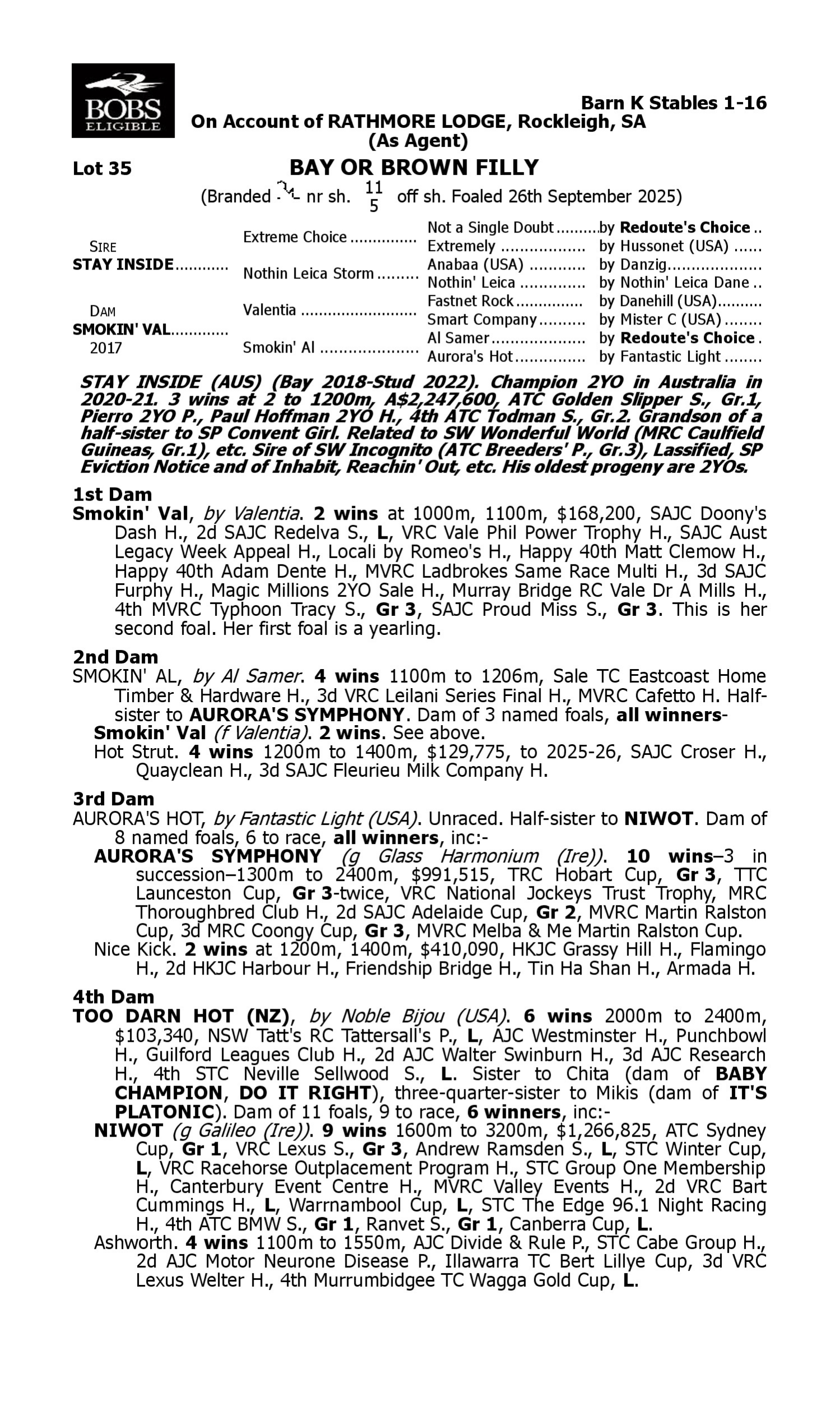 Lot 34 has pedigree updates since the release of the catalogue.