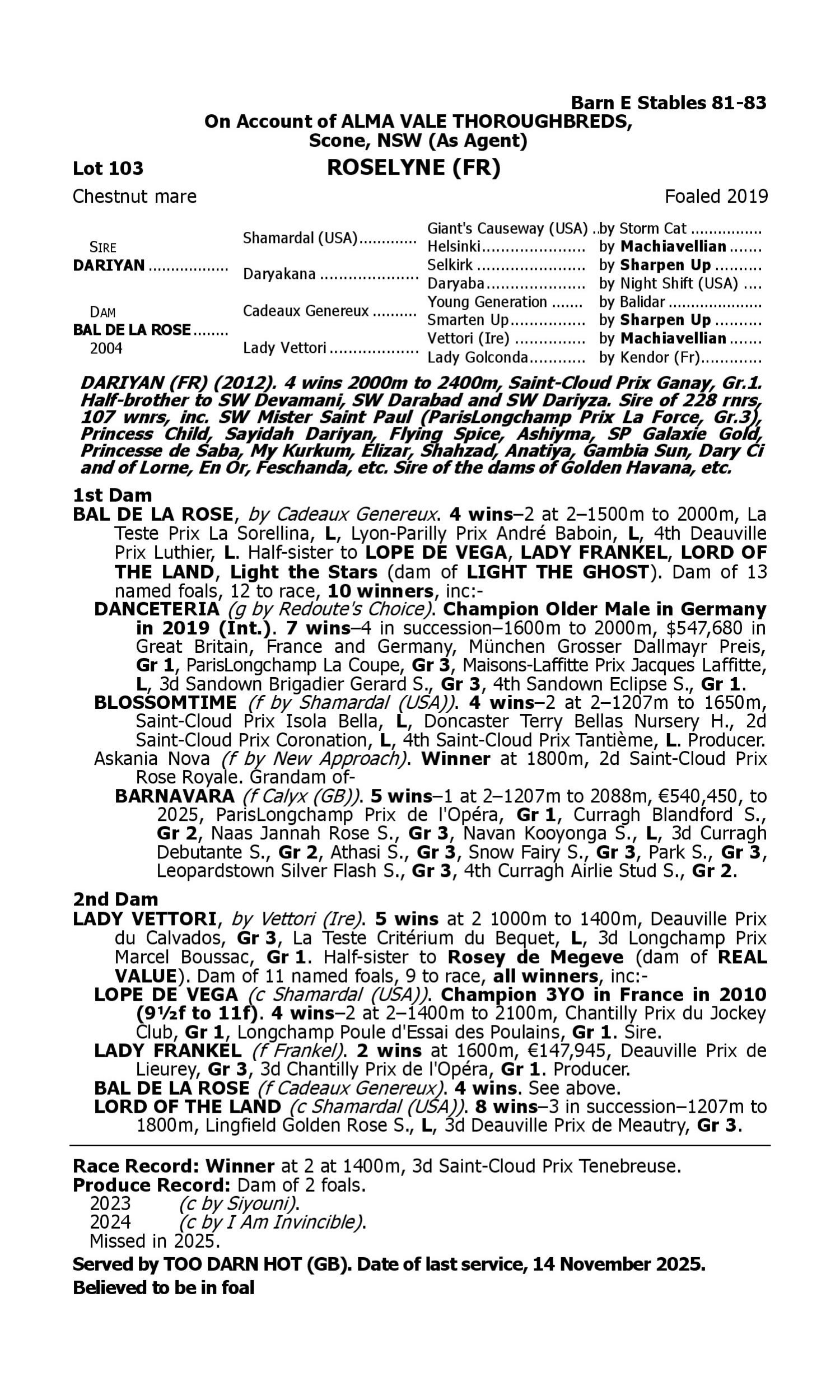 Pedigree for Lot 102 Zoustar - Paulinie (GB)