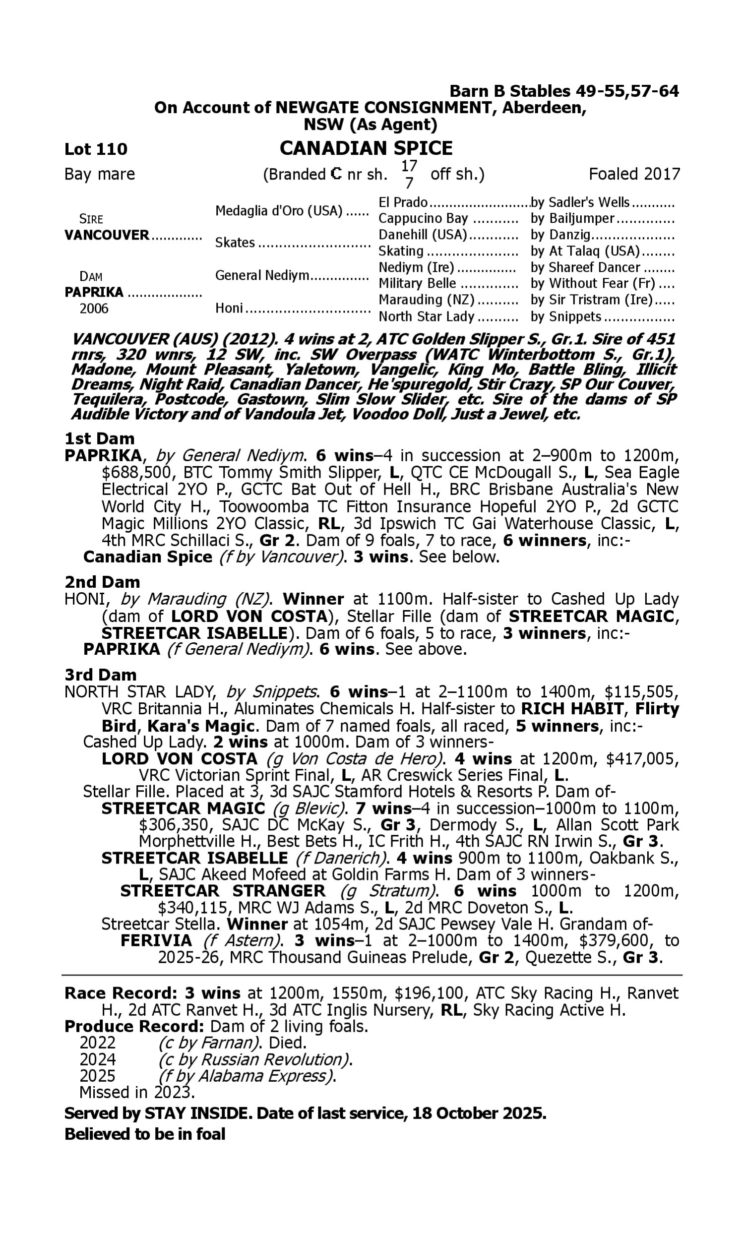 Pedigree for Lot 109 Foxwedge - Galapagos Girl