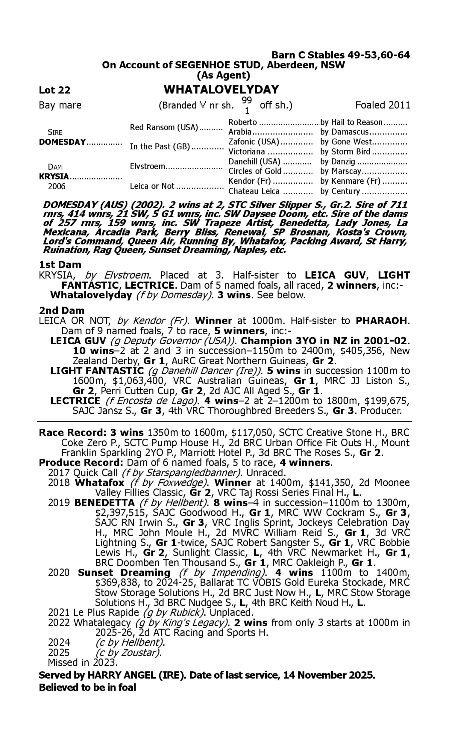 (+) believed to be in foal.
