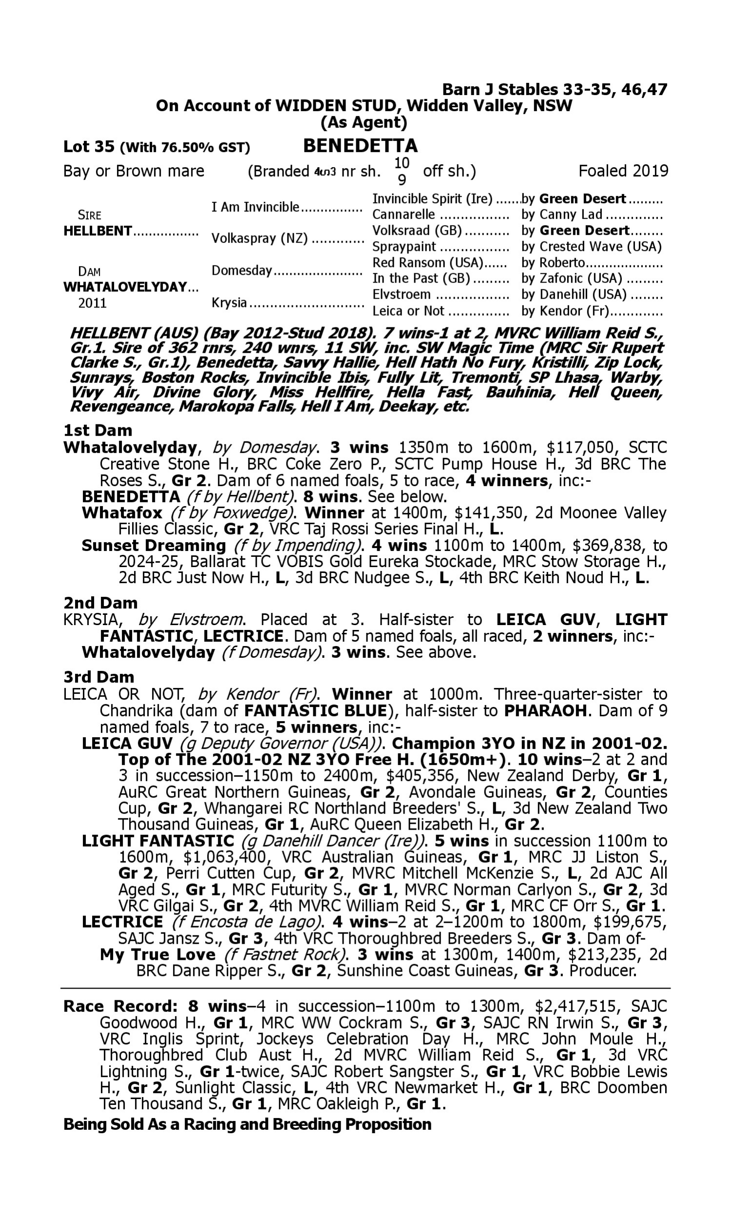 Lot 34 has pedigree updates since the release of the catalogue.