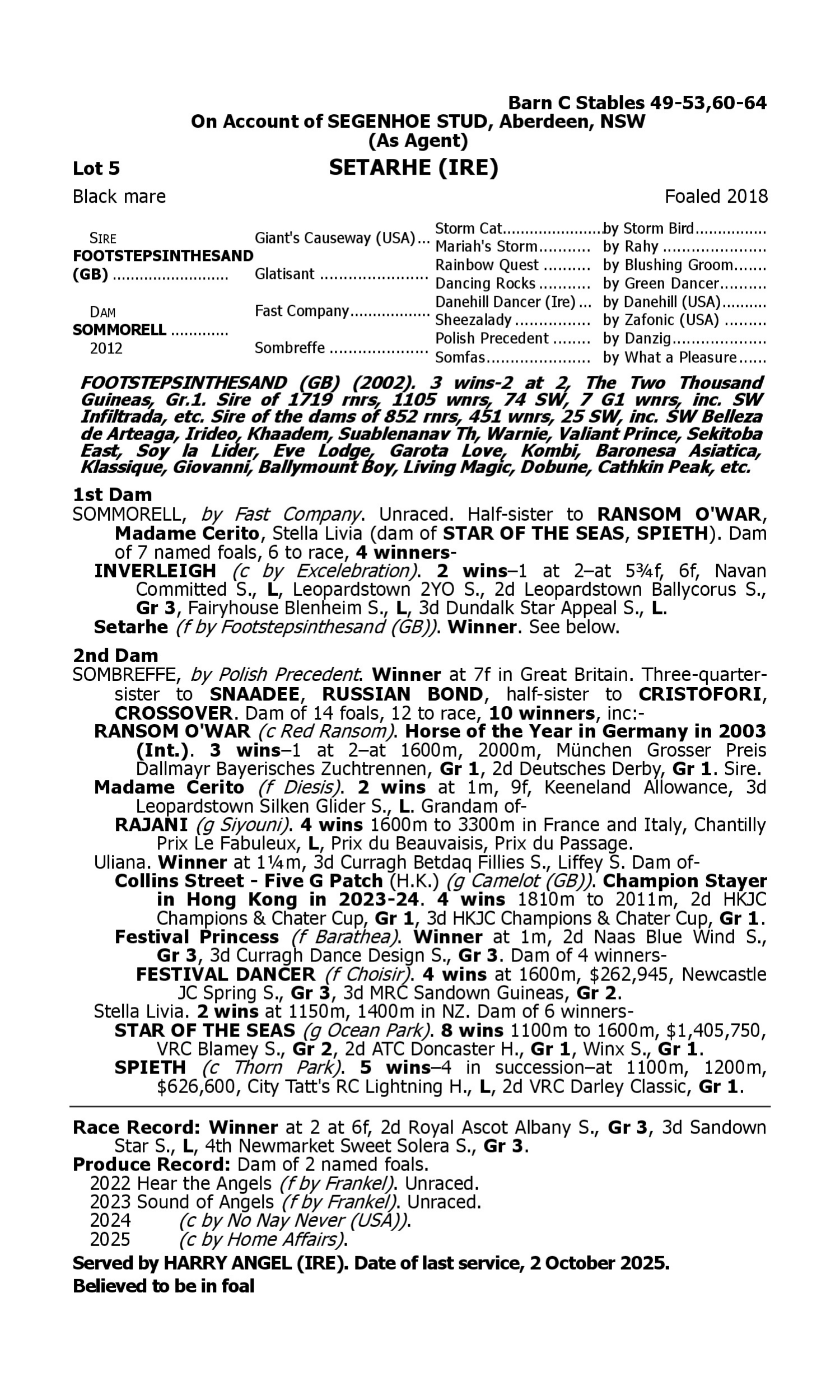 (+) believed to be in foal.