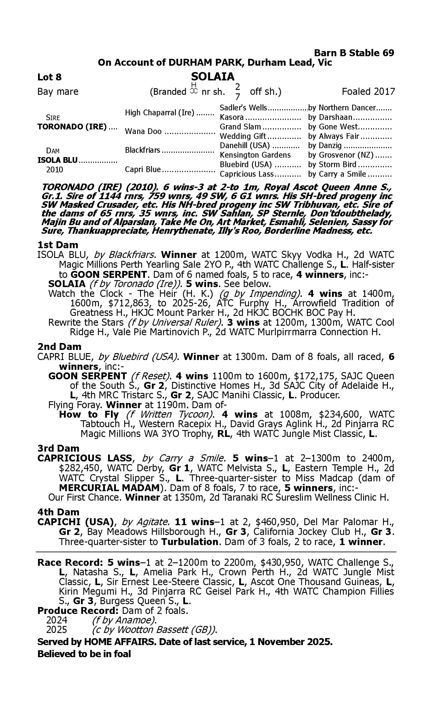 Pedigree for Lot 7 The Autumn Sun - See You Soon