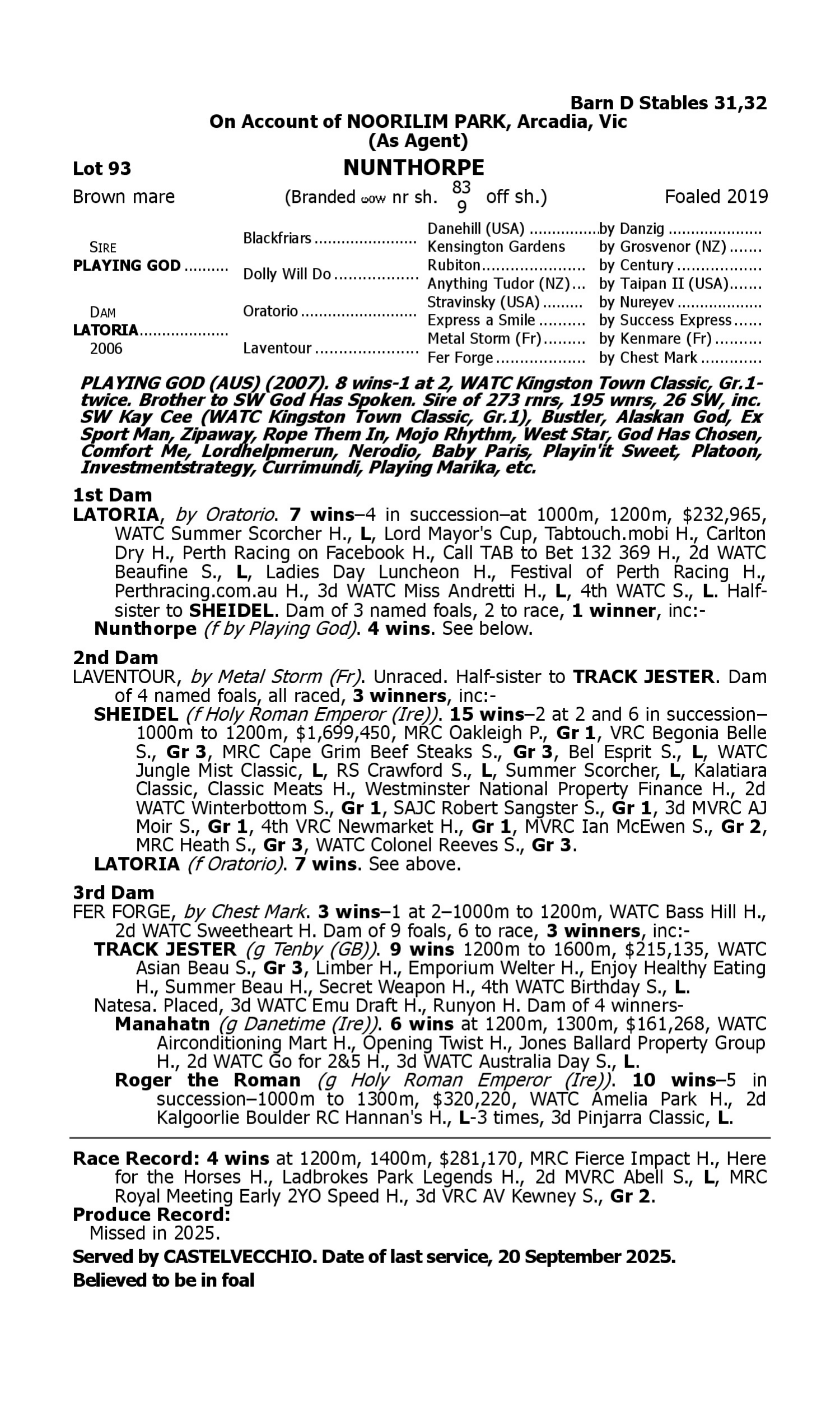 Pedigree for Lot 92 Denman - Crevice (USA)