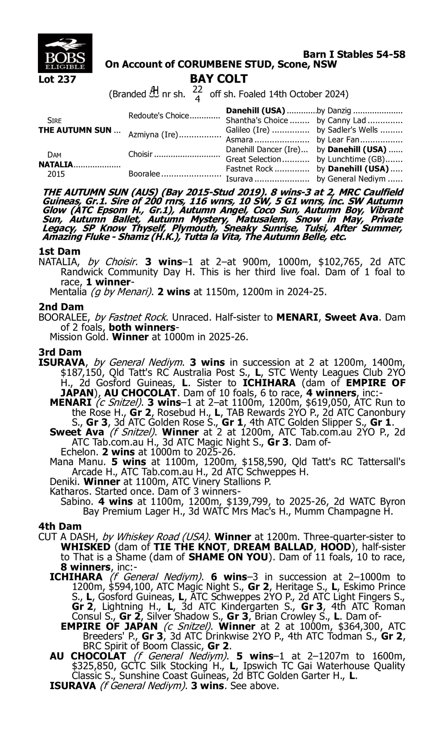 Pedigree for Lot 236 Snitzel - Nanyo Venus (JPN)