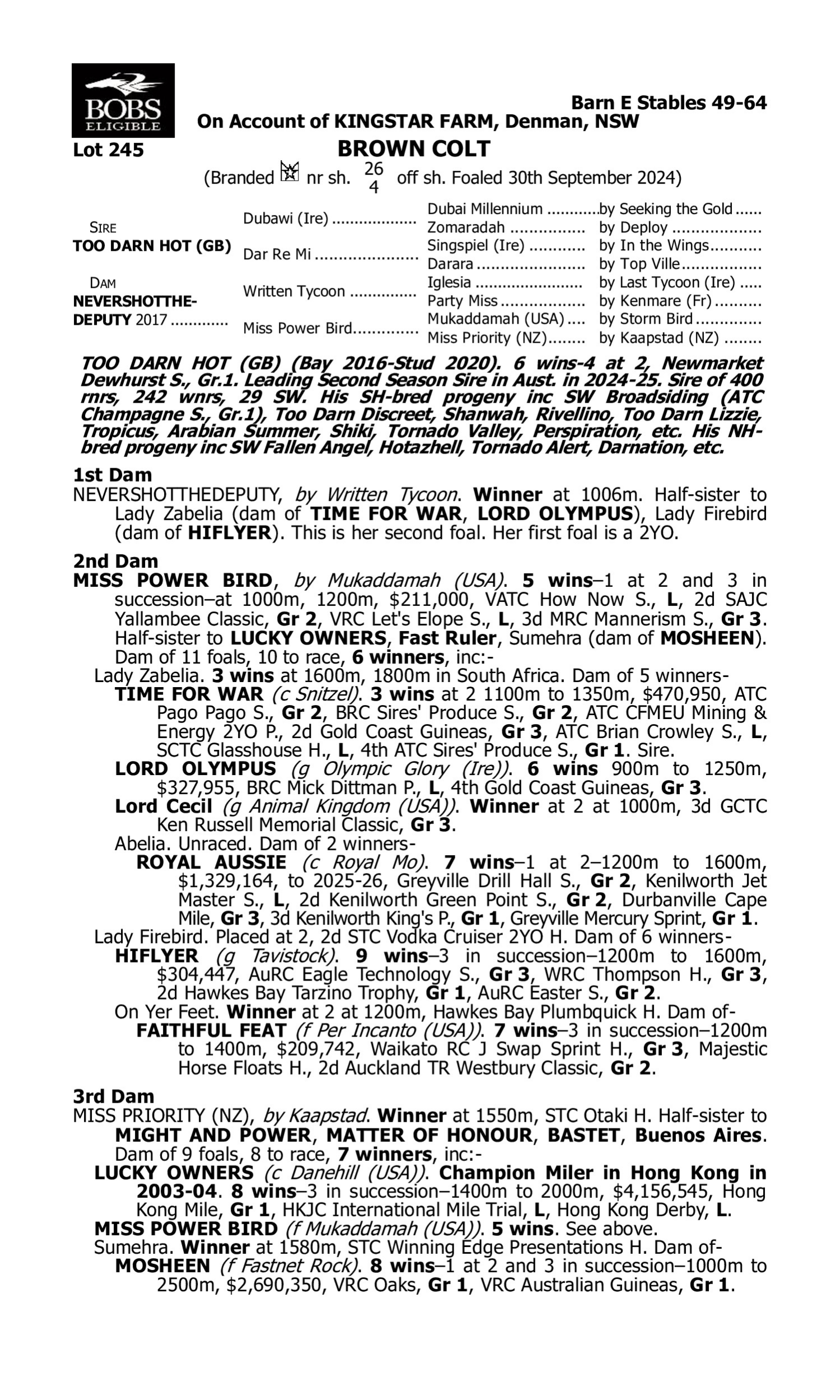 Pedigree for Lot 244 Zousain - Never Forget (FR)