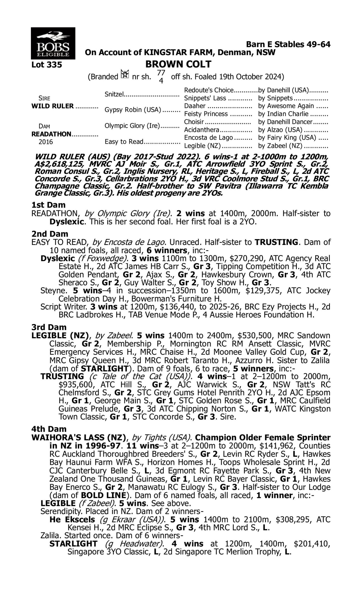 2nd Dam Some People Callme (2020.g. by Maurice-Genesta, by Redoute's Choice-Line Honours). 2025-12-28 1st Seymour RC Annabelle Cleeland MP H. 3rd Dam ETERNAL WARRIOR (2023.c. by Extreme Warrior-Devout Hero, by No Nay Never-Perfect Persuasion). 2025-11-29 1st MRC (Caulfield) Merson Cooper S. L