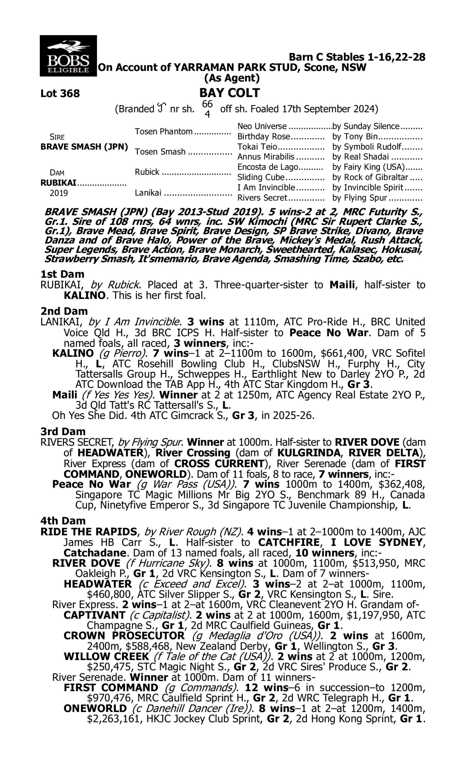 Pedigree for Lot 367 I Am Invincible - Royal Missile