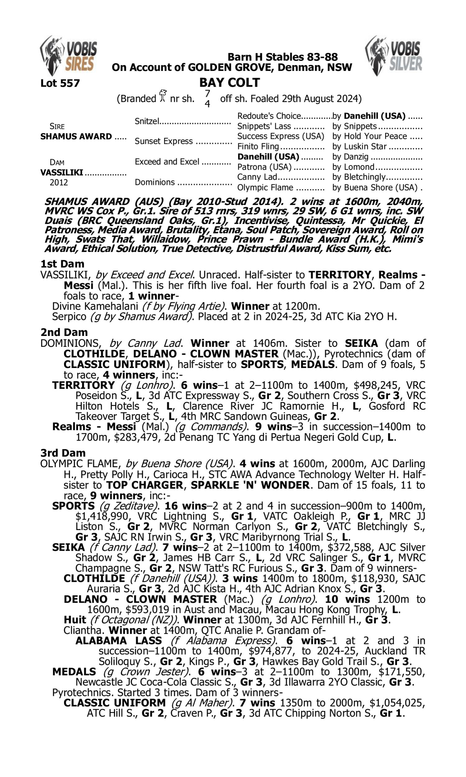 Pedigree for Lot 556 Cool Aza Beel (NZ) - Vanderlune