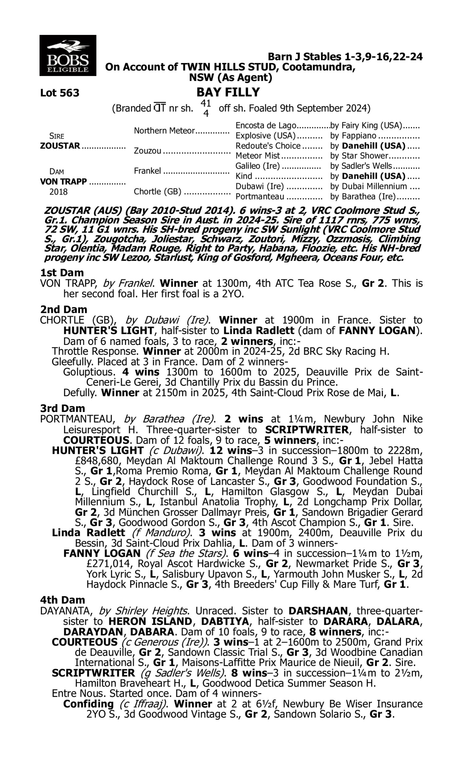 Pedigree for Lot 562 Acrobat - Vittoriosa (NZ)
