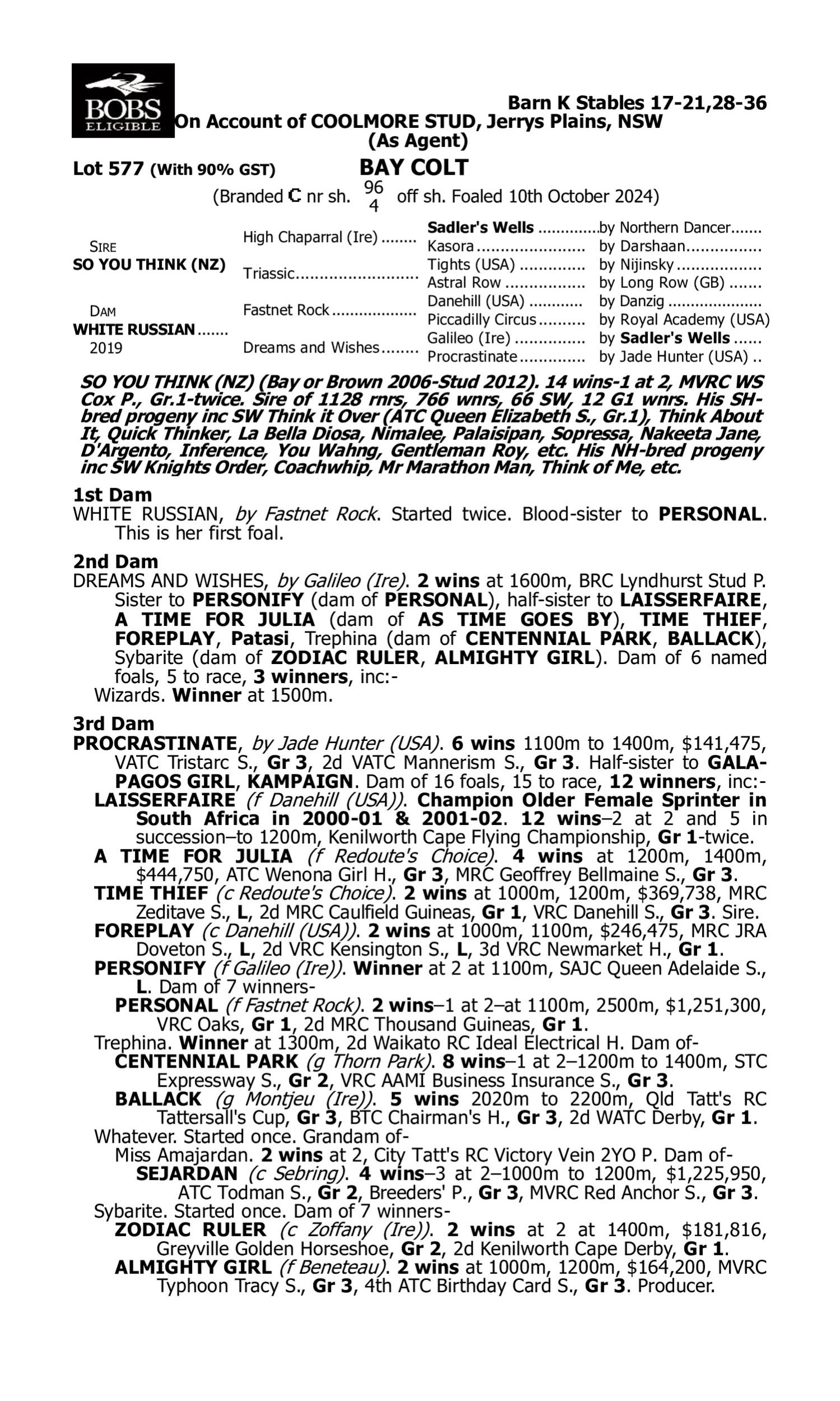 Lot 576 has pedigree updates since the release of the catalogue.