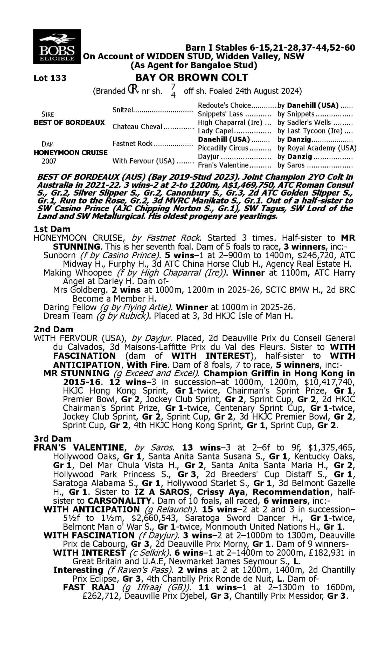 Lot 132 has pedigree updates since the release of the catalogue.