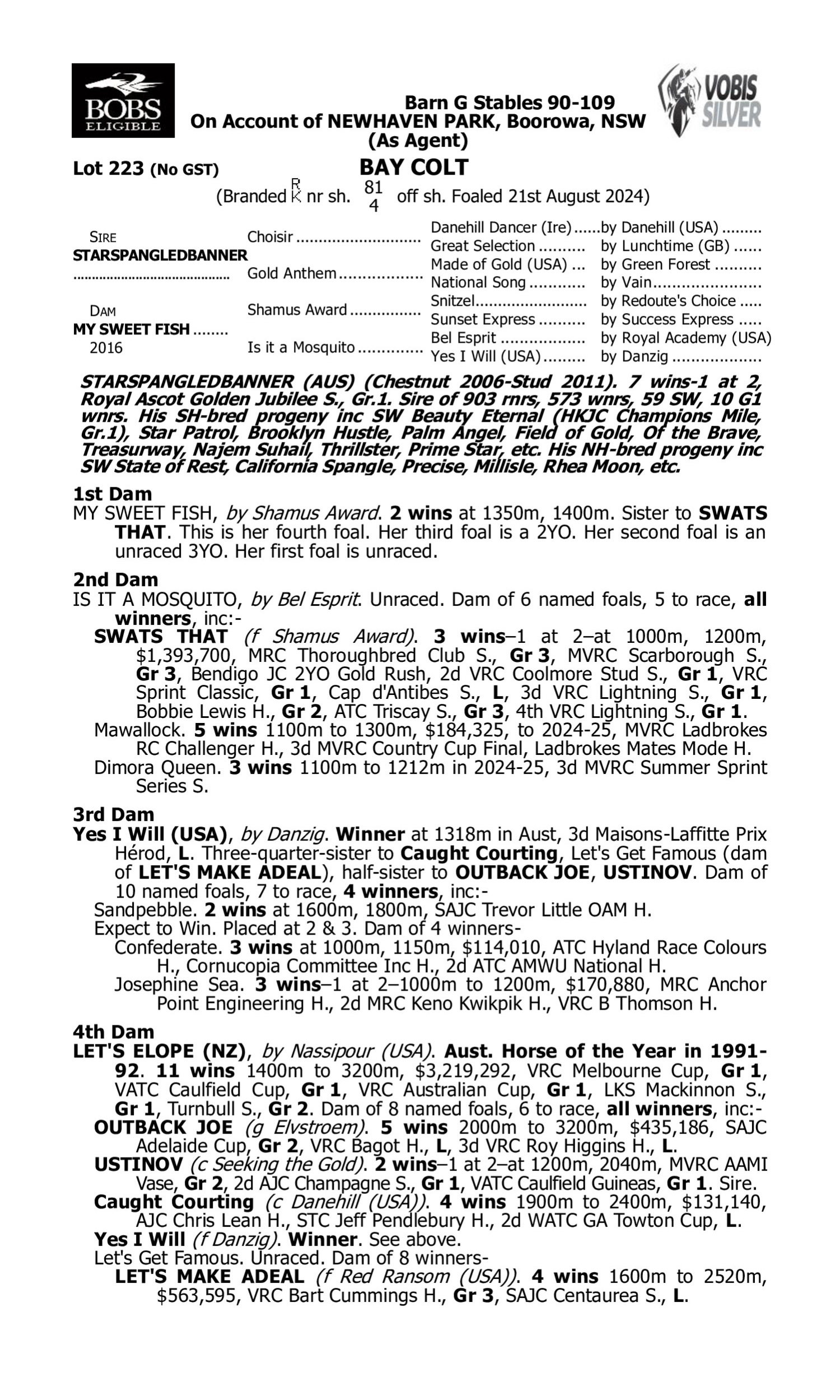 Pedigree for Lot 222 Brave Smash (JPN) - My Miss Pedrille