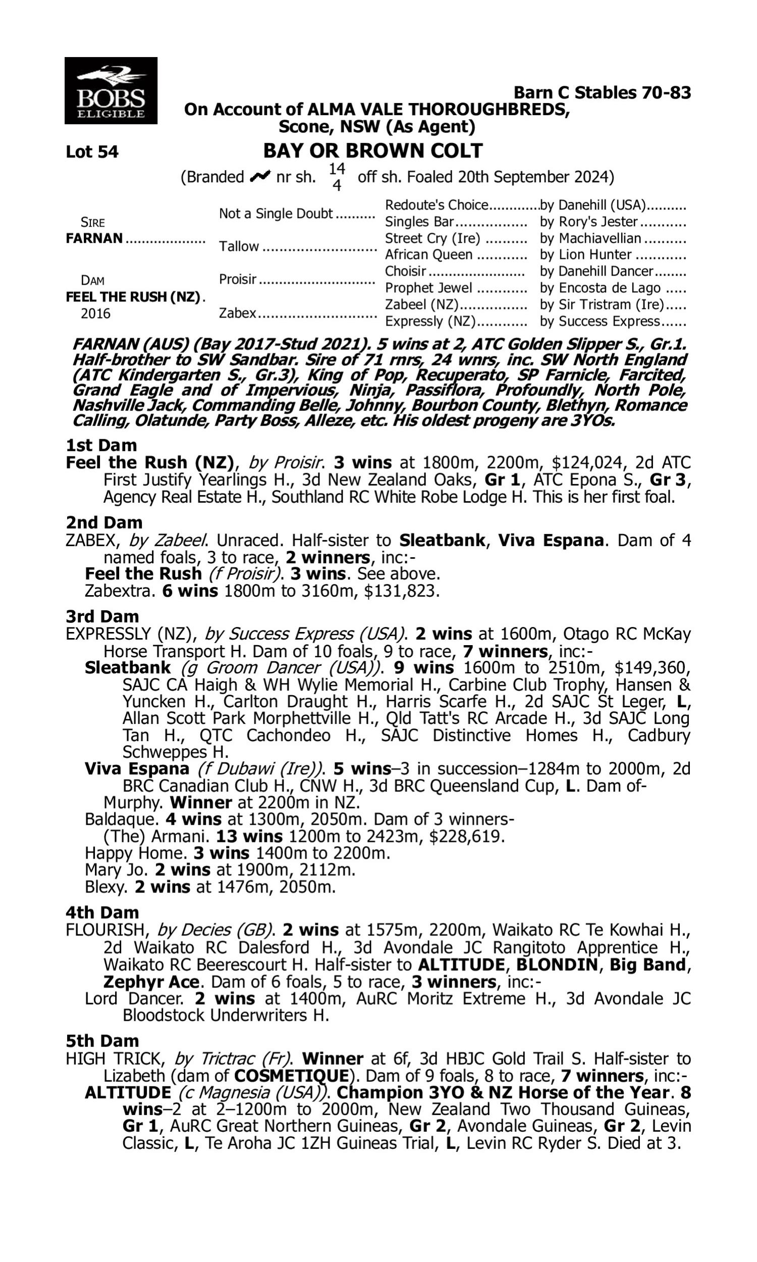 Pedigree for Lot 53 Starspangledbanner - Federosa (NZ)