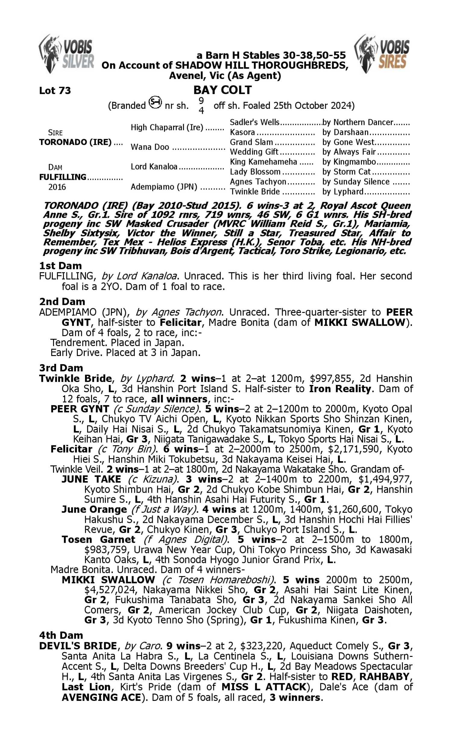 Pedigree for Lot 72 Capitalist - Fuhryk
